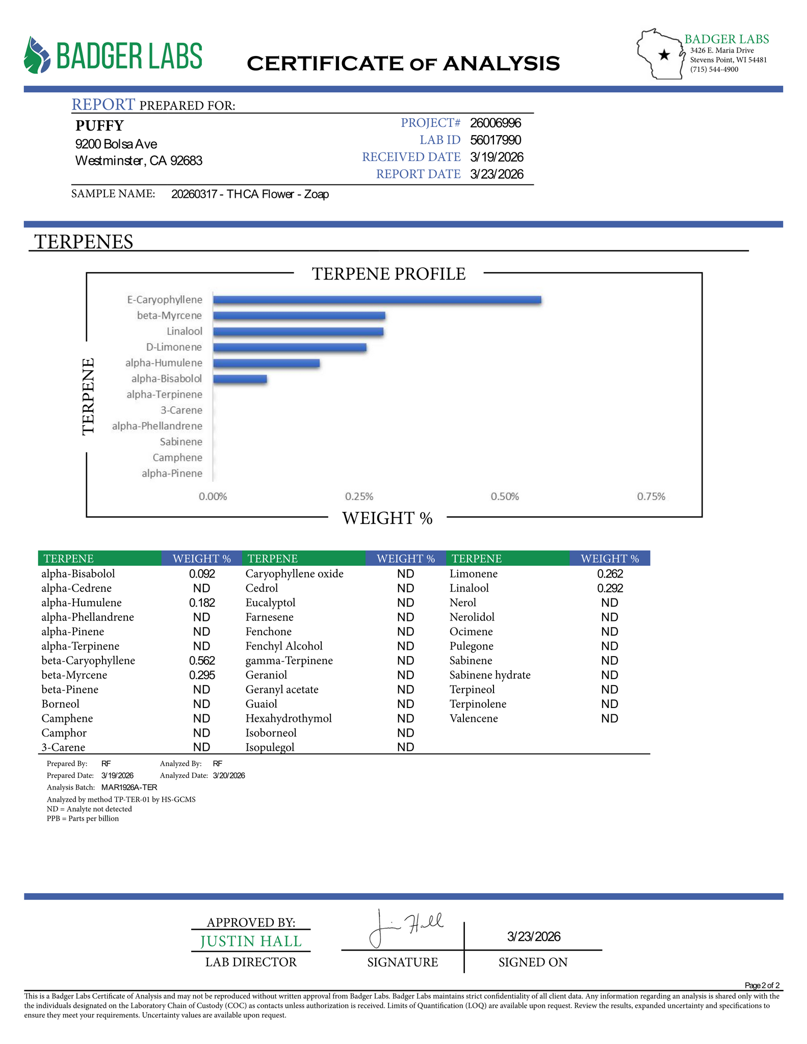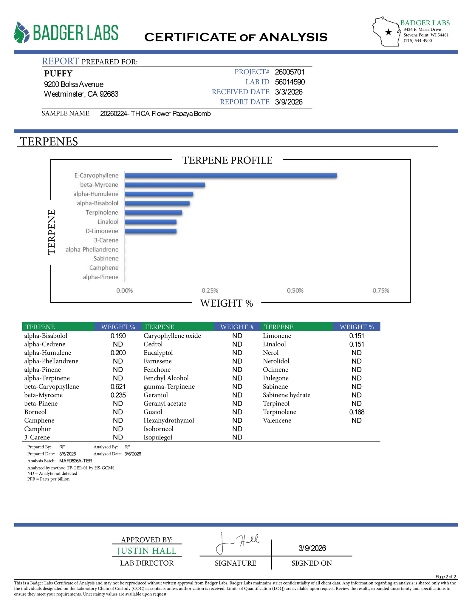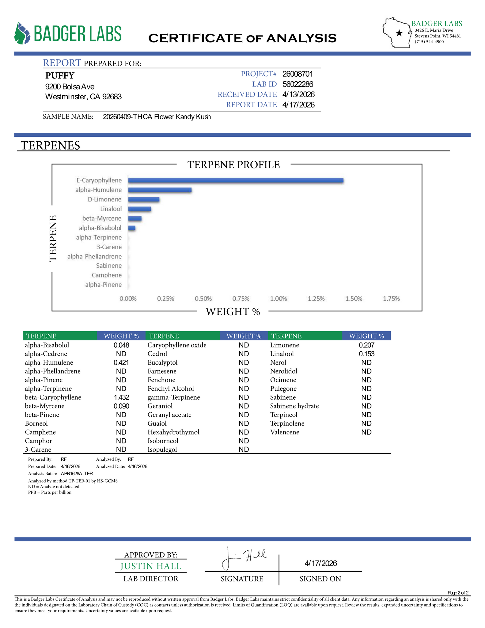 Kandy Kush smalls (Hybrid) Terpene Profile