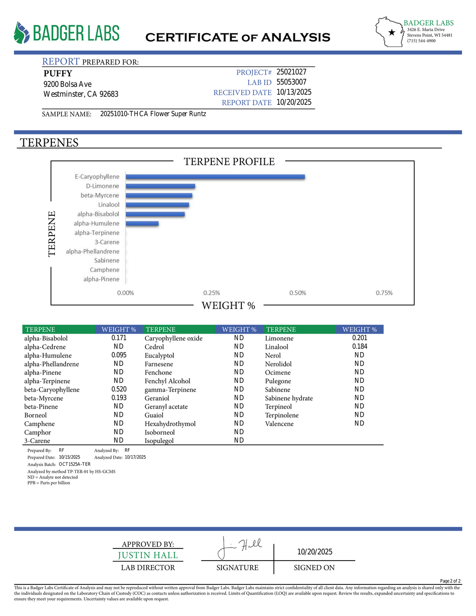 LABS & TERPENE PROFILES: