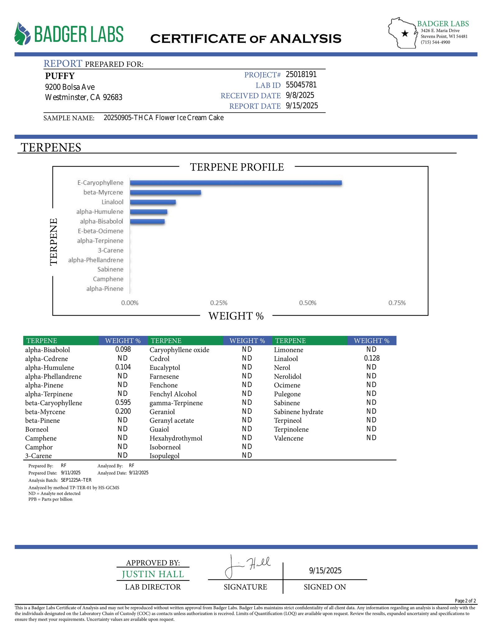 PUFFY Ice Cream Cake is an Indica-dominant hybrid THCa strain, born from the potent cross between Wedding Cake and Gelato #33. The aroma blends delicate floral notes with creamy buttery undertones and a subtle hint of sweet fruit, creating a soft and inviting fragrance. Visually, its buds are dense and chunky, showcasing a vibrant mix of green and purple hues with occasional touches of lavender, accented by fiery orange pistils. Consumers often report an experience that begins with a euphoric, uplifting cerebral high, gradually easing into a deep, soothing physical relaxation.